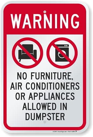 Smartsign 18 X 12 Inch Warning No Furniture Air Conditioners Or Appliances Allowed In Dumpster Metal Sign 63 Mil Laminated Rustproof Aluminum Red Black And White Yard Signs Amazon Com Industrial Scientific
