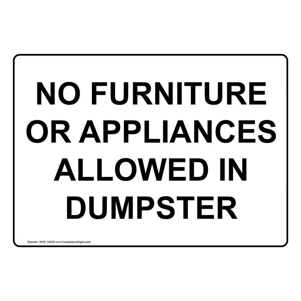 No Furniture Or Appliances Allowed In Dumpster Sign Nhe 14539