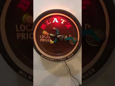 Vintage Blatz Beer Sign Spinning Unicycle In Barrel Bottle Man Motion Sign Bar 1902765414