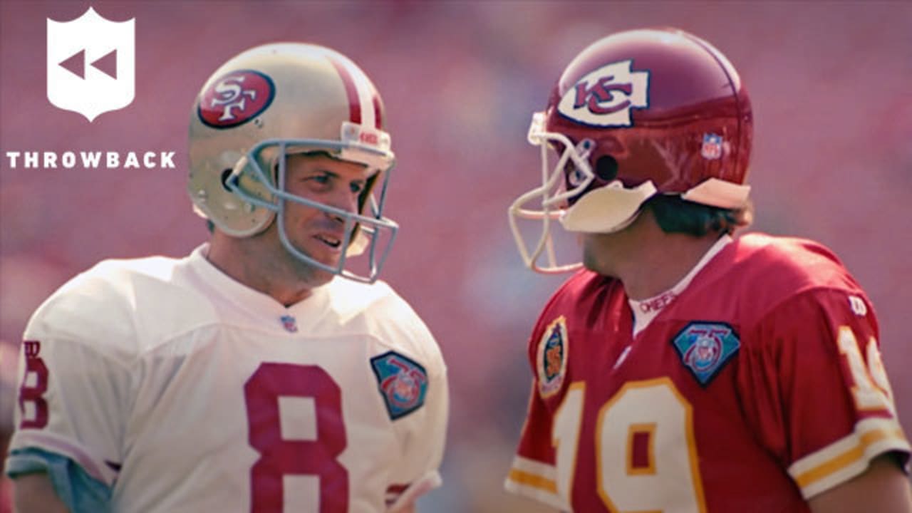 Joe Montana Of The Chiefs Alongside His 49ers Replacement Steve Young Nfl Football Players Nfl Football 49ers San Francisco 49ers Football