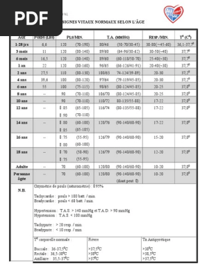 Signes Vitaux Normaux Selon Age Pdf Medecine Interne Physiologie Cardiovasculaire