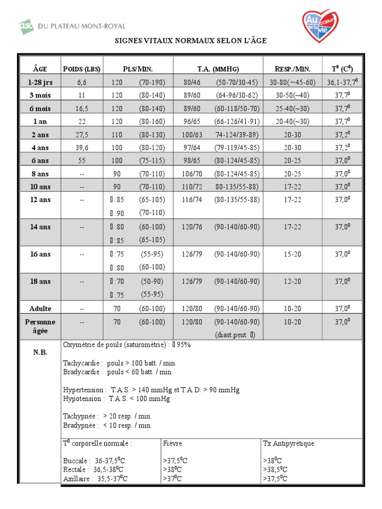Signes Vitaux Normaux Selon Age Pdf Physiologie Physiologie Cardiovasculaire