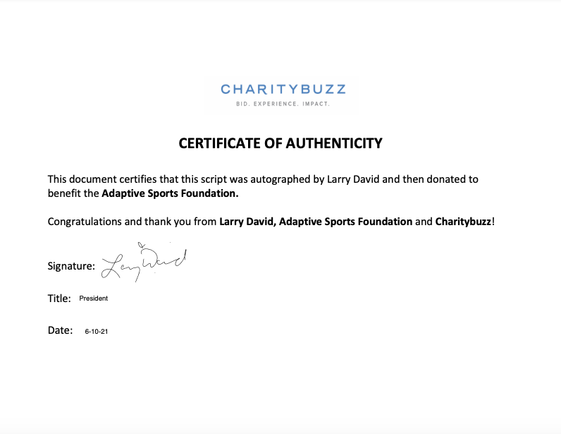 Charitybuzz Script From A Curb Your Enthusiasm Episode Of Your Choice Lot 1204504