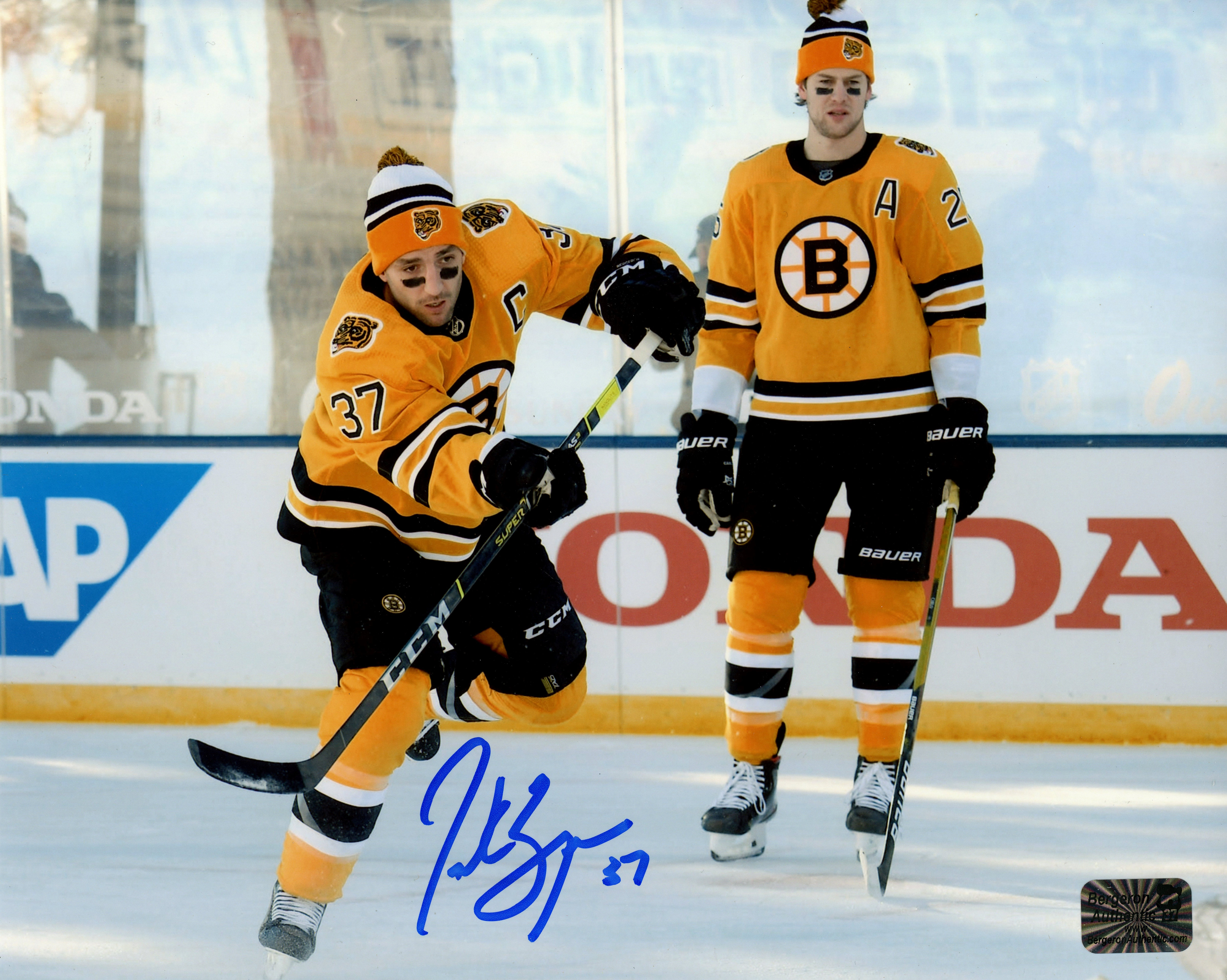 Patrice Bergeron Boston Bruins Signed Autographed 21 Tahoe Pregame Warmup 16x20 Ysms