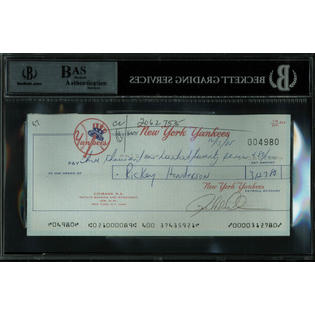 Press Pass Collectibles Yankees Rickey Henderson Authentic Signed 1985 Payroll Check Bas Slabbed