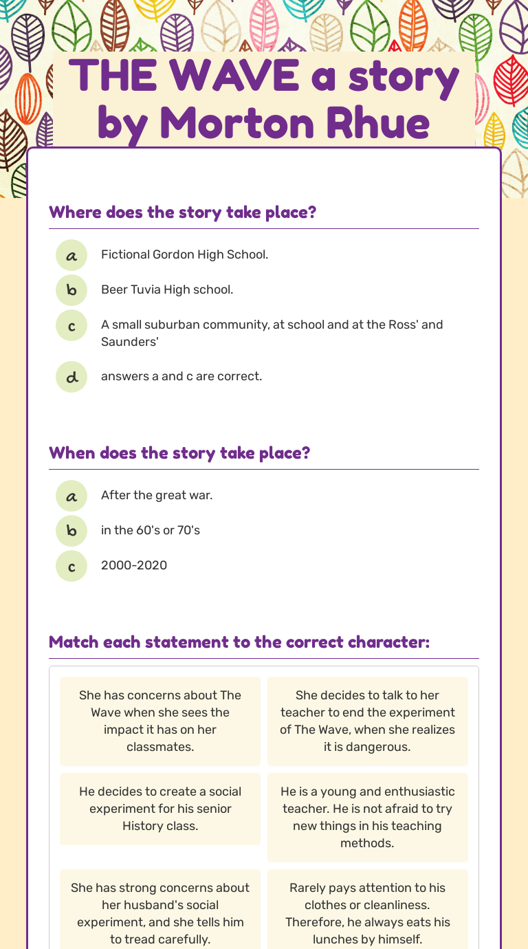 The Wave A Story By Morton Rhue Interactive Worksheet By Orly Paz Wizer Me